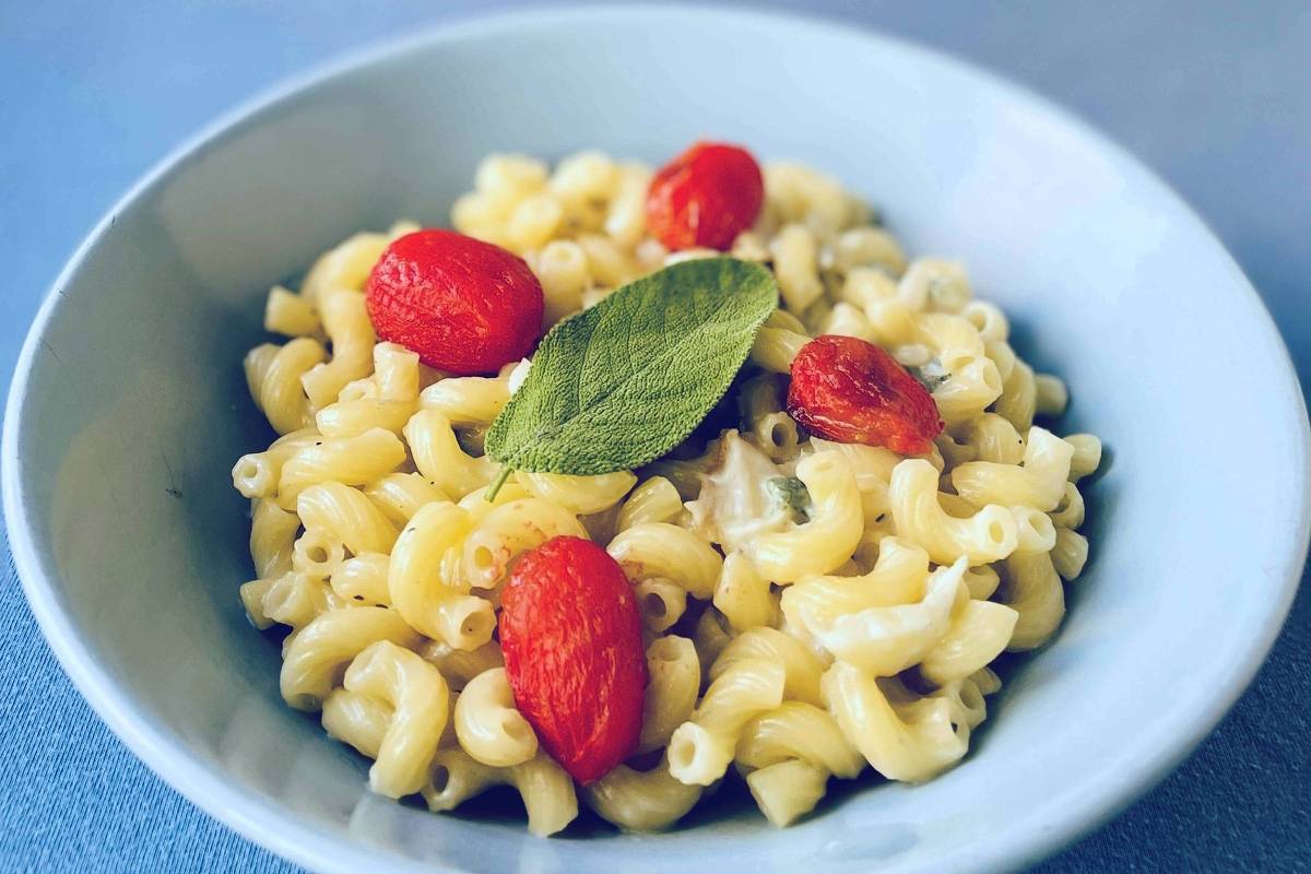 Macarrão ao gorgonzola com tomatinhos assados